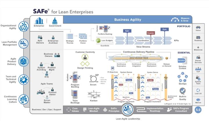 Die verschiedenen Elemente von SAFe werden in dem Big Picture der SAFe-Organisation dargestellt: